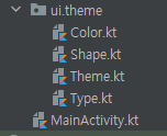 위의 코드는 Shape 코드입니다. 여기서 만들어진 코드는 Theme 내에서 파라미터를 지정해주는데 사용됩니다. roundedCornerShape는 이름답게 둥근 모서리를 만들어주는 코드입니다.
